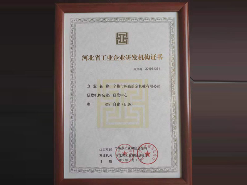 河北省工業(yè)企業(yè)研發(fā)機構證書